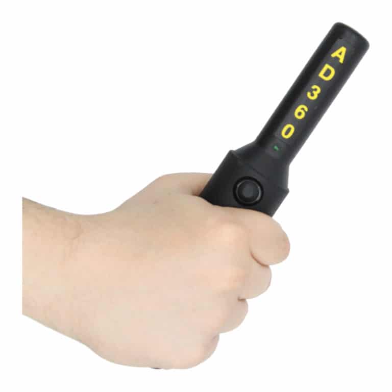 360° Detection Area The Adams AD360 is a different type of small metal detector wand in that the detection area runs the entire length of the probe and across the tip in all directions. This allows for reliable detection in area with difficult to reach angles such as between a person’s arm and torso or the length of their legs. |