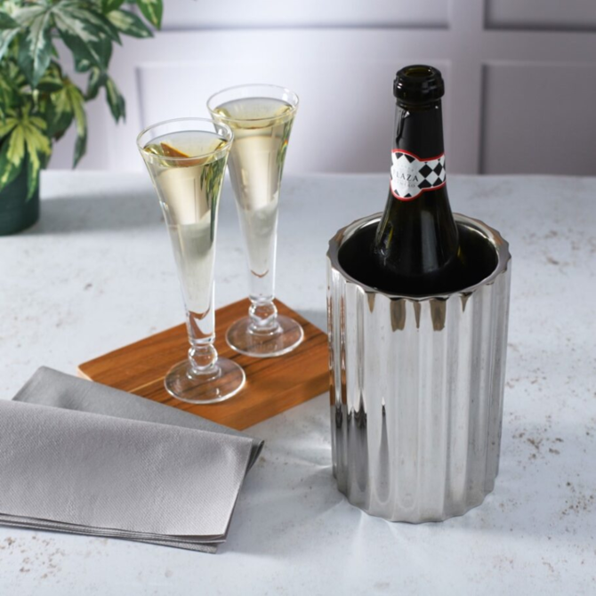 Designed to accommodate your favourite bottles of wine, champagne, or other beverages, this cooler keeps them perfectly chilled for extended periods, ensuring each pour is as refreshing as the last. The double-wall construction provides excellent insulation, maintaining the ideal temperature without condensation.