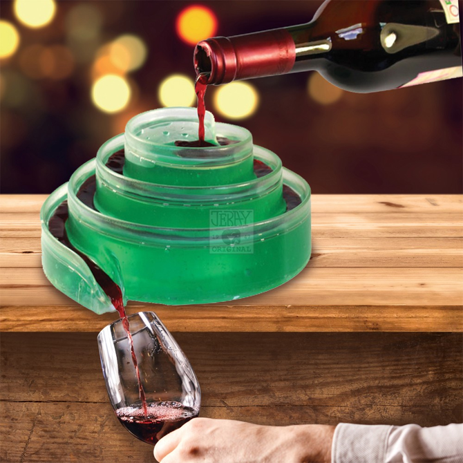 Make sure your glass (or mouth!) is underneath the spout to collect the cold drink. The special gel will chill a whole bottle of alcohol, or similar, and takes just an hour or so to recharge in the freezer.