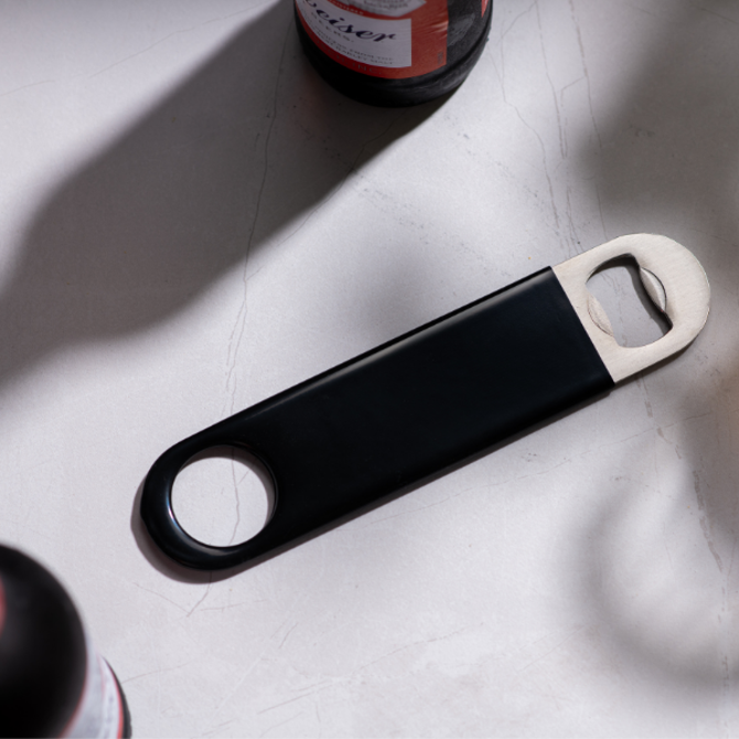 This stylish Vinyl Coated Bar Blade offers excellent grip and a strong design for ease of opening beer bottles. Perfect for professional bartenders or use at home, this durable Bar Blade also features a spinner ring making it perfect for flair tricks.