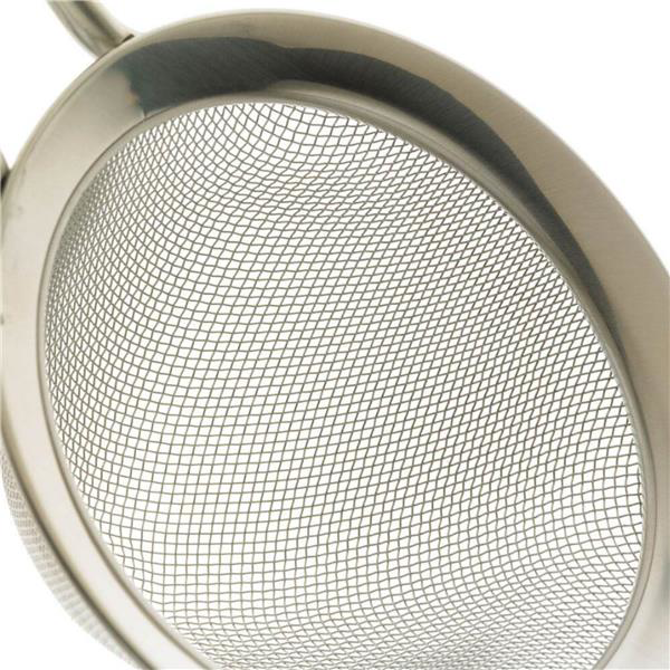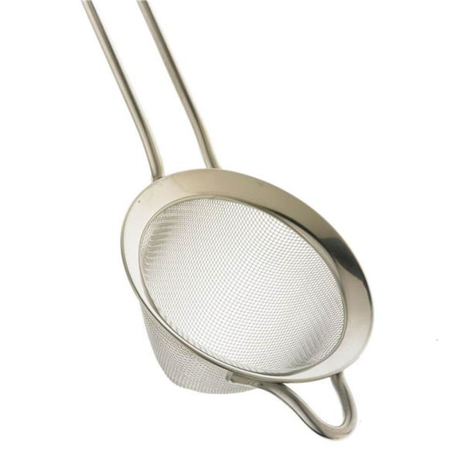 Double strain drinks quickly and efficiently with the fine mesh, tapered bowl.Bowl diameter 3 1/2”. Overall length 10 3/8”.