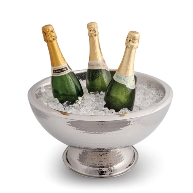 Keep your drinks feeling and looking cool with this Bellagio Wine & Champagne Cooler. With a hammered finish this stunning bottle cooler makes for a stunning drinks display.