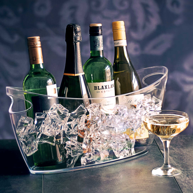 The elegant boat shapes ensures your guests can peruse the refreshments on offer before helping themselves. Ideal for outdoor parties, this durable plastic drinks pail can be carried with ease. With room for up to 4 x 75cl wine bottle, everyone's taste can be catered for.