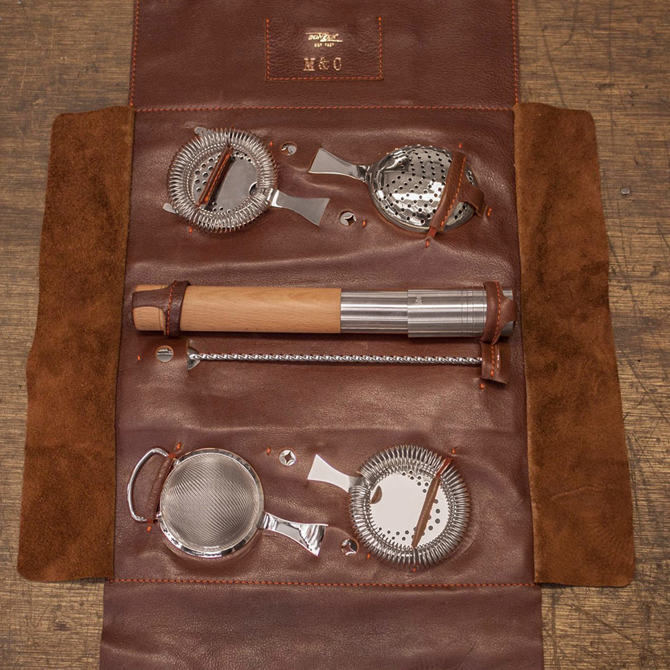 Made from the finest stainless steel, the Bonzer Heritage Barware Leather Roll Bag is the complete professional barware tool bag. Perfect for bartenders on the go, this barware kit holds everything you could possibly need to create professional standard cocktails.