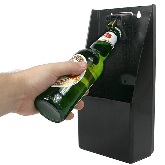 This black plastic Cap Catcher Pillar is a brilliant and labour saving device perfect for bars, restaurants and even the home. When attached to the wall you can quickly remove bottle caps with ease and the hanging bucket catches them as they fall.