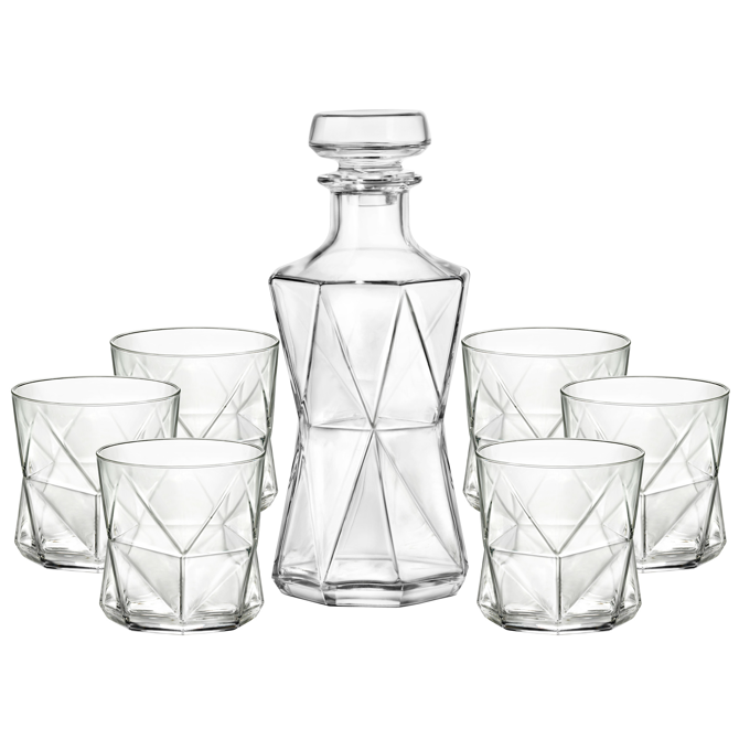 Comprising of one decanter and six tumblers, this Cassiopea Set features a contemporary, geometric design which perfectly contrasts its traditional serving method. Ideal for use to store and serve a wide variety of spirits including whisky or even wine.