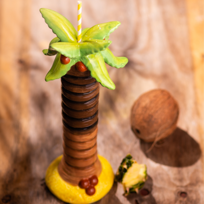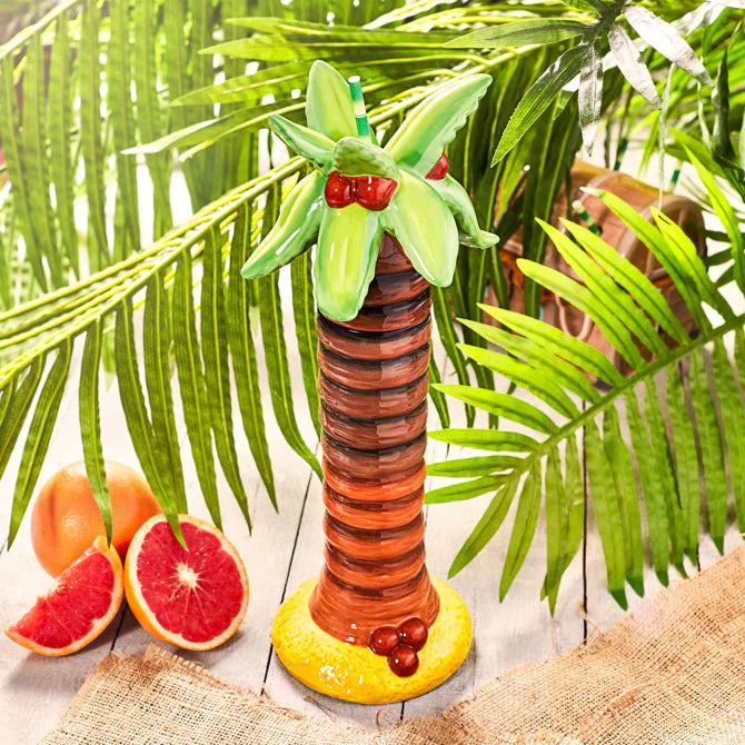 Melt away to a tropical paradise with this Ceramic Palm Tree Tiki Mug! With a truly unique design and holding up to 63cl, this cocktail tumbler is perfect for serving long Hawaiian cocktails with plenty of room for ice.