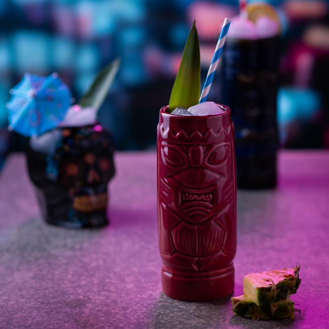 With a generous size, there is plenty of space for a tropical cocktail filled with ice and fruit. The truly unique design is hand crafted and features a traditional tiki face.