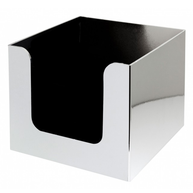 With a chrome finish this Napkin Holder offers a contemporary aesthetic whilst providing a functional and durable design. Perfect for use in pubs, commercial and domestic bars it provides the perfect place to store your cocktail napkins for a clean and tidy bar or serving environment. Holds approximately 100 napkins. Perfect for use with the Cocktail Napkins Black