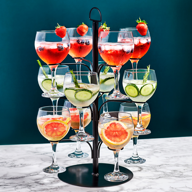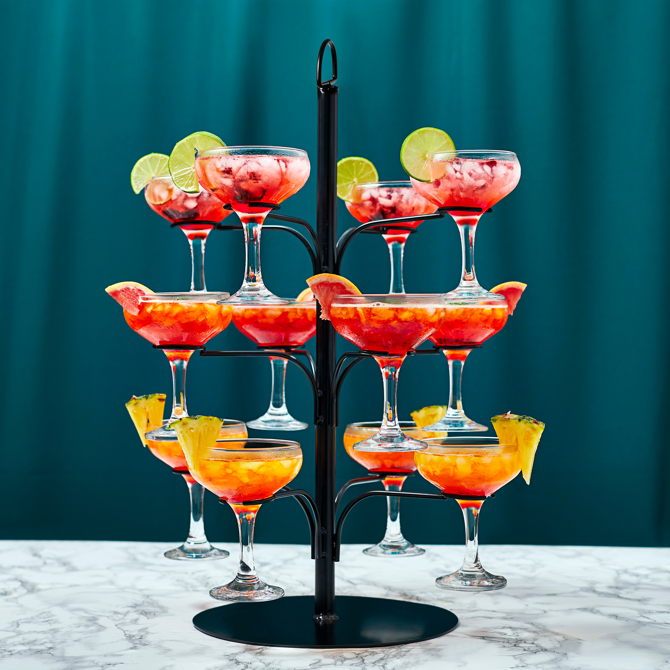 Perfect for serving up to 12 glasses, you can present champagne at events or a selection of gins for tasting evenings. Suited for use at home or commercial settings, this cocktail glass tree would take pride of place on any restaurant or bar table as the ultimate drinks presentation.