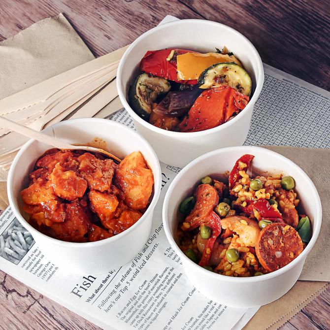 Designed to be perfect for serving hot or cold foods like soup, pasta or even ice cream, these Compostable Soup Containers are made from sustainably sourced board and are eco-friendly choice for caterers and street food vendors. Finished with a plant-based PLA lining these tubs are fully compostable, and can be paired with a fully compostable flat lid.