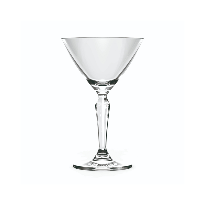 This Sophisticated Cocktail martini glass features a long stem, allowing you to hold your drink without warming it up in your hand. The V-shape of the glass possesses an amount of 215ml, with a large surface area to enjoy the smells and aromas.