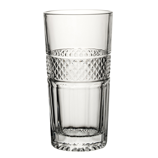 The Detroit Hiball Tumblers are the vintage inspired way to shake up your cocktail presentation. With a faceted, textured detailing around the body, these hiball glasses are truly inspirational compared to ordinary tumbler glasses.