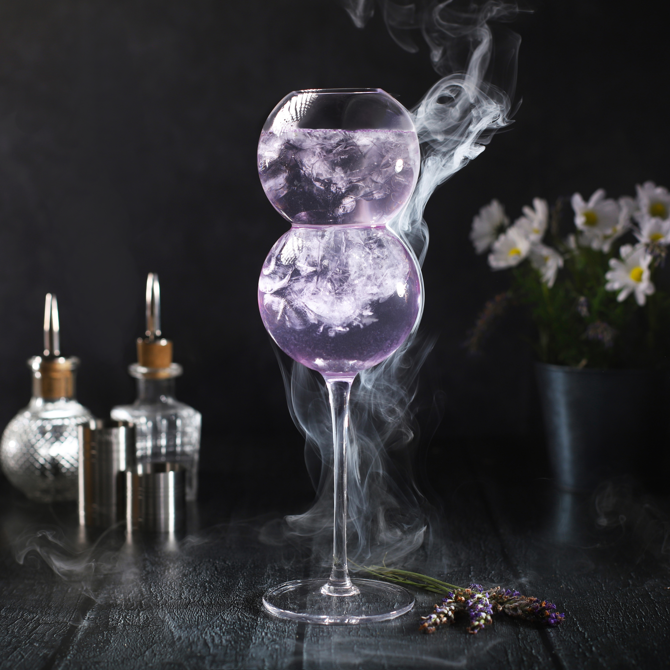 This unique glass, features a whimsical design, and is perfect for showcasing your signature cocktails, soft drinks and even water.