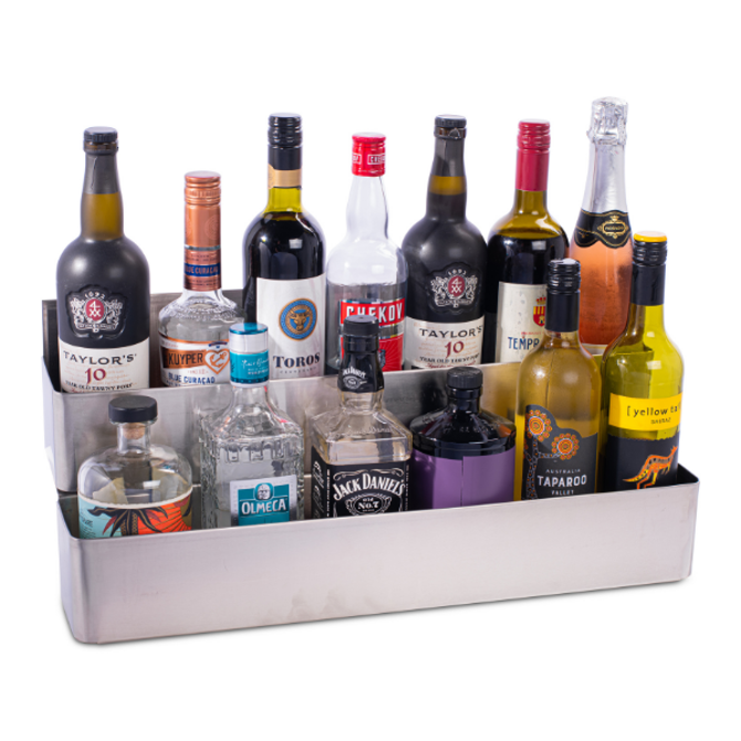 Ideal for busy bars or flair bartenders, the Double Speed Rail allows for instant access to liqueur bottles and Store & Pour systems. With a high quality stainless steel construction, it offers a practical and stylish addition to your bar. This two tier rail holds up to 14 x 0.75ltr bottles.
