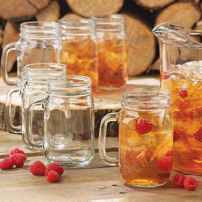 At first sight they might look like a jam jar, but the 49cl Drinking Jars are actually designed to hold a refreshing cold beverage. Complete with glass handle to keep warm hands away from the bowl, these Drinking Jars are ideal for serving up an iced tea, iced coffee or cocktail punch.