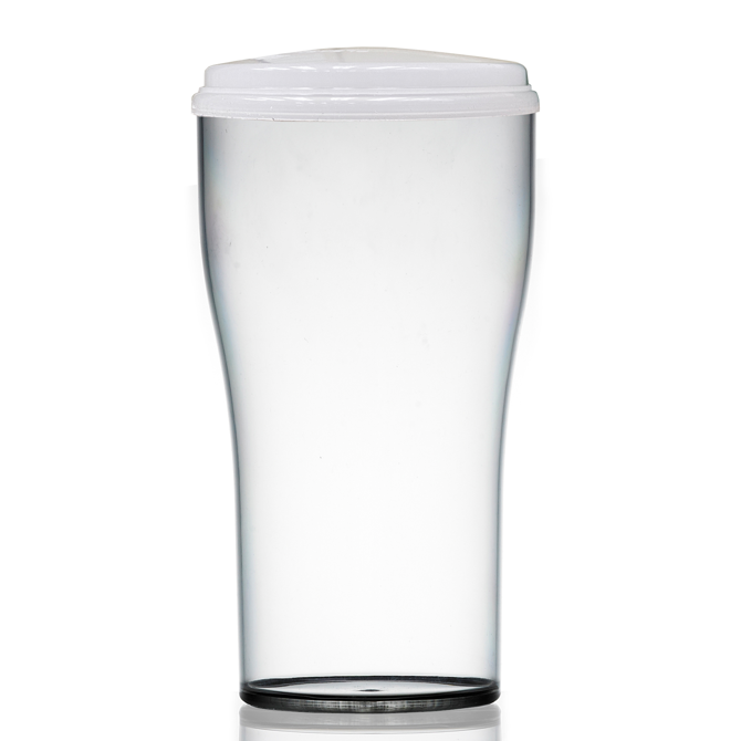 Econ Polystyrene 2 Pint Beer Take Out Reusable Glass & Lid 40oz / 1.13ltr