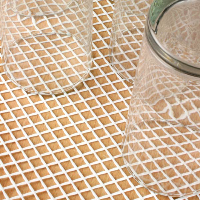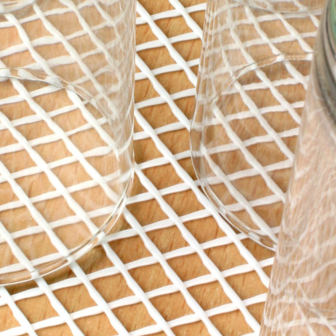 There will be no need to worry about your glassware creating marks or scratches on your bar or cabinet shelves with the Economy Bioliner. This flexible liner can be cut to size, while the anti-bacterial agent keeps your glasses clean and the holes help give ventilation.