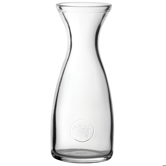 For those that love to entertain, the Economy Glass Carafe will prove invaluable. Fill it with water or wine and bring it to the dinner table for the perfect finishing touch. This carafe combines a sturdy, robust design with an elegant fluted mouth and embossed grape design on base.