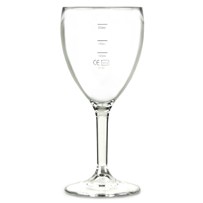 This plastic wine glass is lined and CE marked to 3 measures; 125ml, 175ml and 250ml. This is ideal for licenced bars after a versatile glass for indoor and outdoor events.