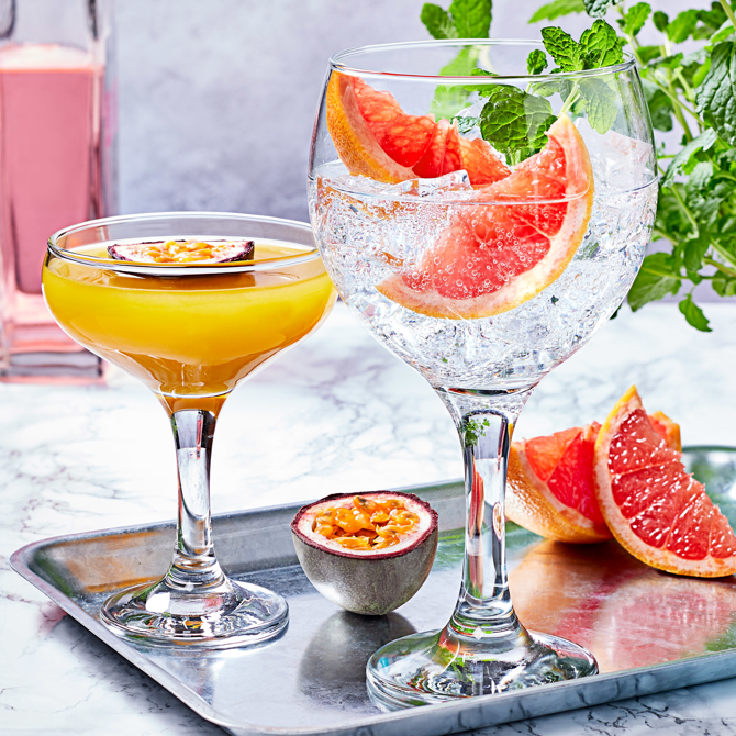 The Essence Gin Glasses feature a classic balloon shaped design. Ideal for serving a traditional gin & tonic, Tom Collins or Singapore Sling, these gin cocktail glasses give an elegant presentation to your botanical creations.