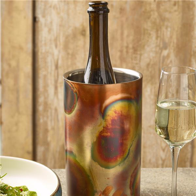 Made from a stainless steel this wine cooler features a double wall construction that keeps your chilled bottles chilled, so no more need to have ice lying around. Burnt copper finish means this wine cooler is perfect for rustic table presentations.