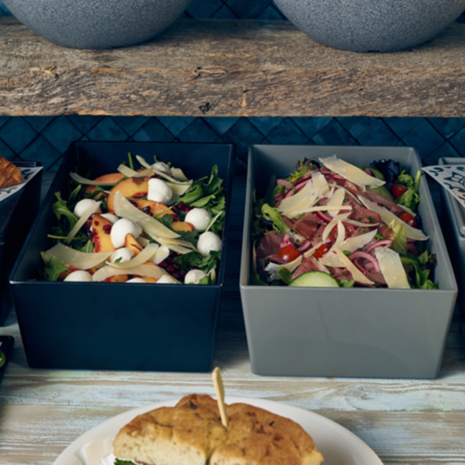 GenWare Melamine Buffet Boxes are designed to fit alongside other GN sized products as well as offering an attractive, functional display option. They work well with many options throughout GenWare`s Buffet and Display range aiding with easily accessible self serving counter displays and buffets. Melamine is strong and virtually unbreakable making them resistant to chipping, scratching and staining. GenWare Melamine Boxes do come with a matching lid to create a great transportation container but, alone it is great buffet bowl for salads or pastas.