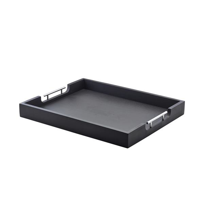 GenWare trays offer a comprehensive range of styles to suit all establishments, uses and budgets.-áAcacia Wood Butler Trays will add sophistication to your serve ware, combining functionality with style. GenWare Solid Black Butler Trays host stainless steel handles adding a premium feature, perfect for hotel room service.