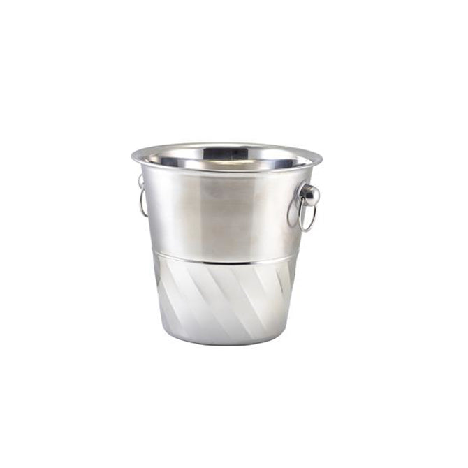 GenWare professional Barware collection has been developed through consultation with London`s finest bar specialists and Mixologists with a vision to create a leading range of professional barware for the modern age. GenWare Stainless Steel Swirl Ice Bucket offers doubled walled insulation along with lid and half swirl design.
