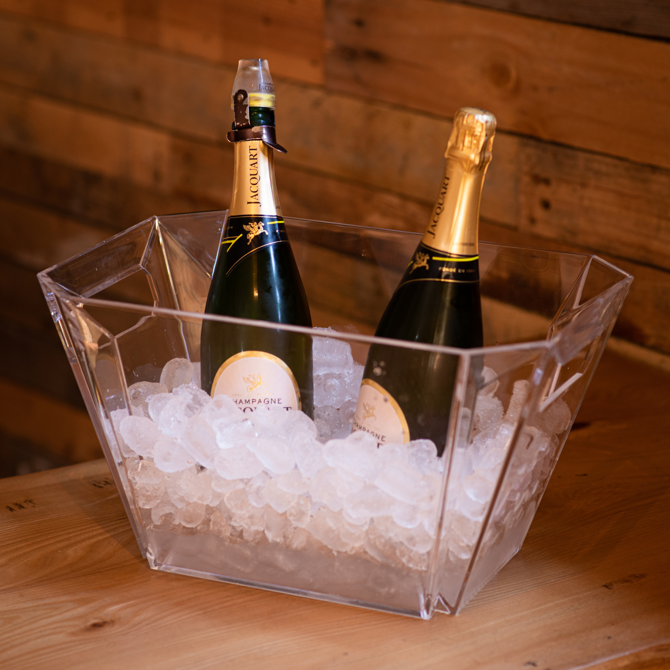 Ensure your favourite cans and bottles are kept in the low degrees with the cool Glacier Acrylic Geometric Wine Bucket. Finished with angled sides, this large drinks pail is perfect for filling with ice and chilling wine, champagne and beer bottles in style.