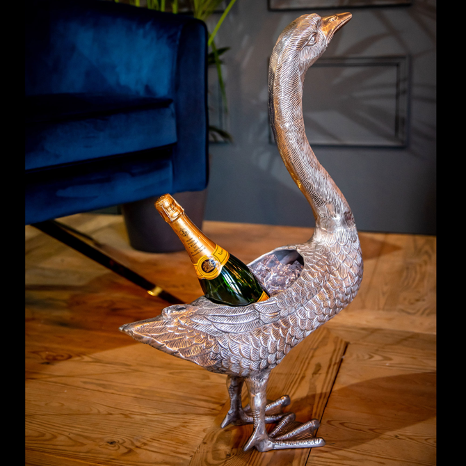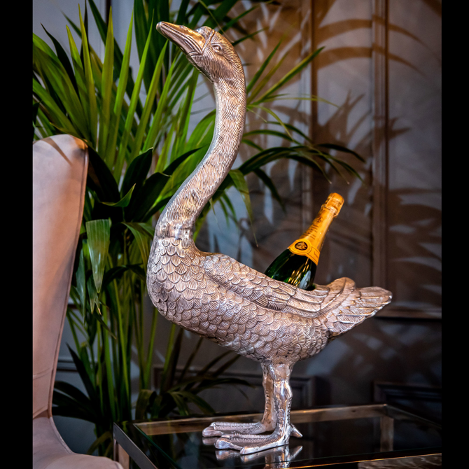 The Goose Wine Cooler with Head Raised is the perfect choice for a more sophisticated serving of wine or champagne. With a realistic design, this champagne cooler brings a unique style to your home or bar.