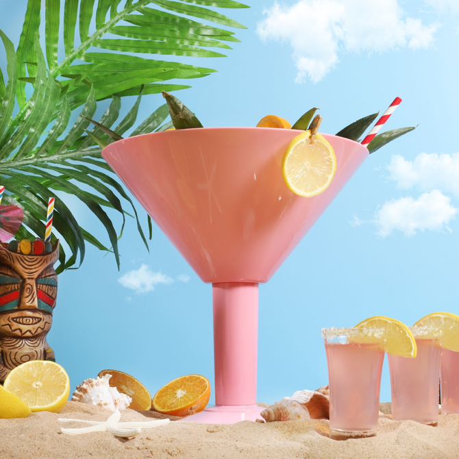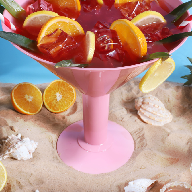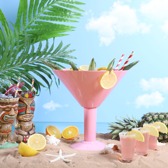 The Grande Pink Acrylic Martini Glass provides the ultimate party piece for special occasions. Ideal for sharing cocktails or as a decorative table centrepiece, this giant martini glass is truly unforgettable.
