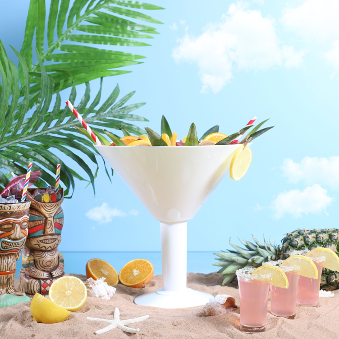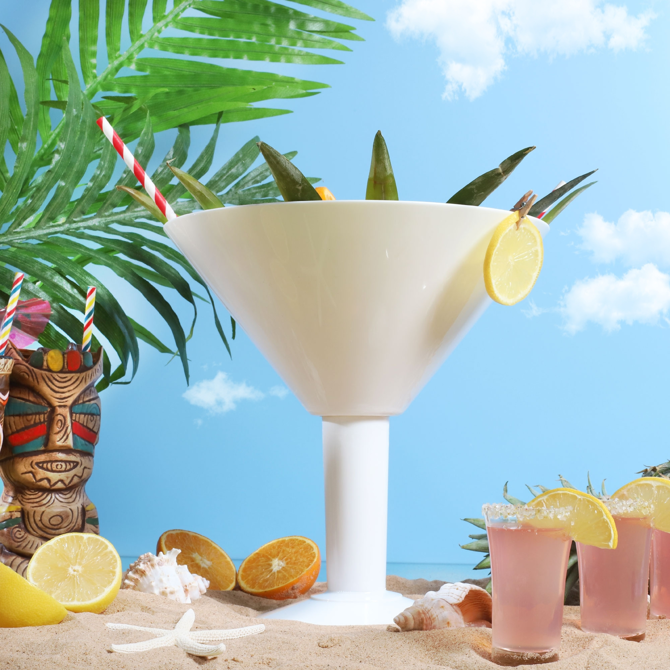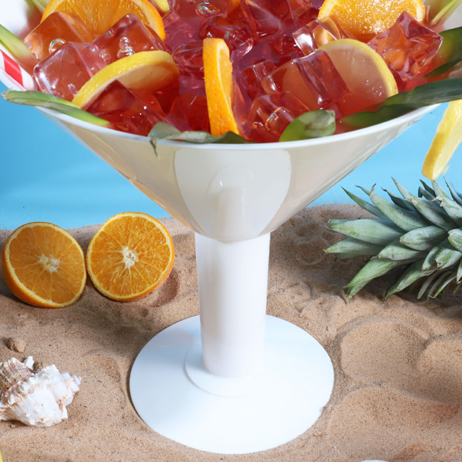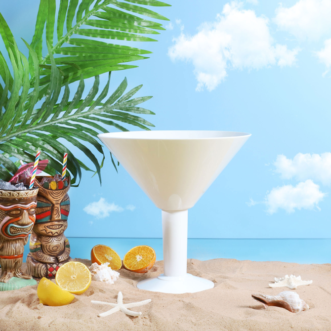 The Grande White Acrylic Martini Glass provides the ultimate party piece for special occasions. Ideal for sharing cocktails or as a decorative table centrepiece, this giant martini glass is truly unforgettable.
