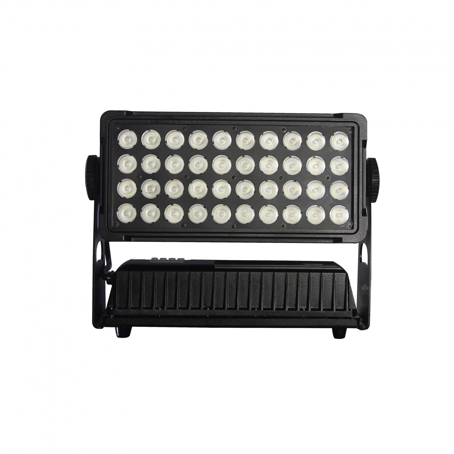 LED waterproof flood light adopts 40 Tianxin 5050 four-in-one SMD lamp beads, passing 3000 hours of high-intensity continuous strobe test, without any fault; Unique optical system design, uniform color spot effect, ultra-high frequency (64KHz) dimming technology, no jitter flash; Seiko cast aluminum shell, split design, fuselage full cast aluminum, temperature protection, safe and reliable; Autonomous heat dissipation + fan heat dissipation, low power short-term use of fan does not turn no noise, long-term working temperature reaches 45 °C fan to start working; Large bracket handle, self-supporting, can be suspended; The motherboard adopts constant current technology and has the function of one-button transmission of RDM, which greatly improves the convenience and stability of the product; Power supply, signal waterproof hand-in-hand connection installation, convenient and fast; At present, this product is widely used in cultural tourism projects, outdoor landscape lighting and other outdoor interpretation places.