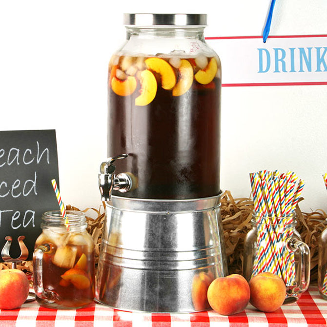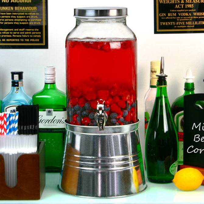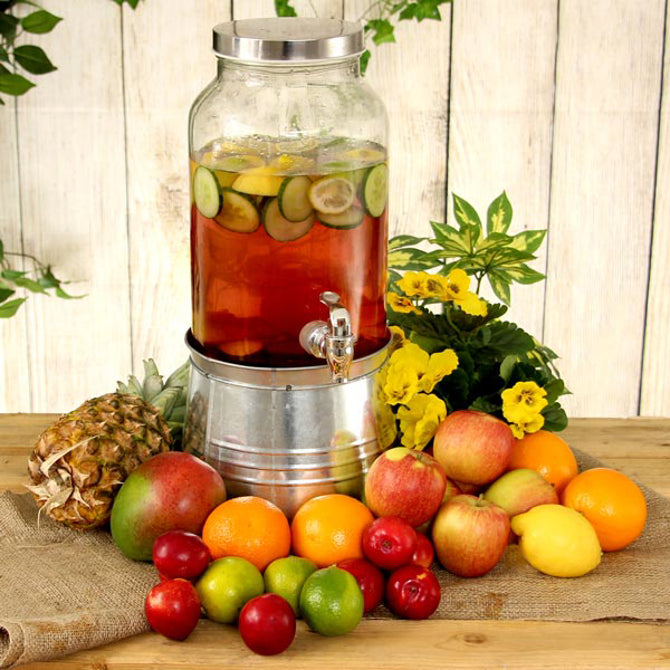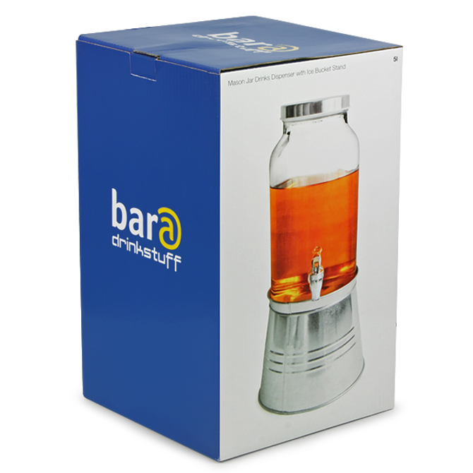 With a retro lemonade jar inspired style, the Mason Jar Drinks Dispenser with Ice Bucket Stand is perfect for summer BBQs, parties and buffets. The versatile design of this Juice Dispenser means the drinks stand also doubles as an ice bucket.