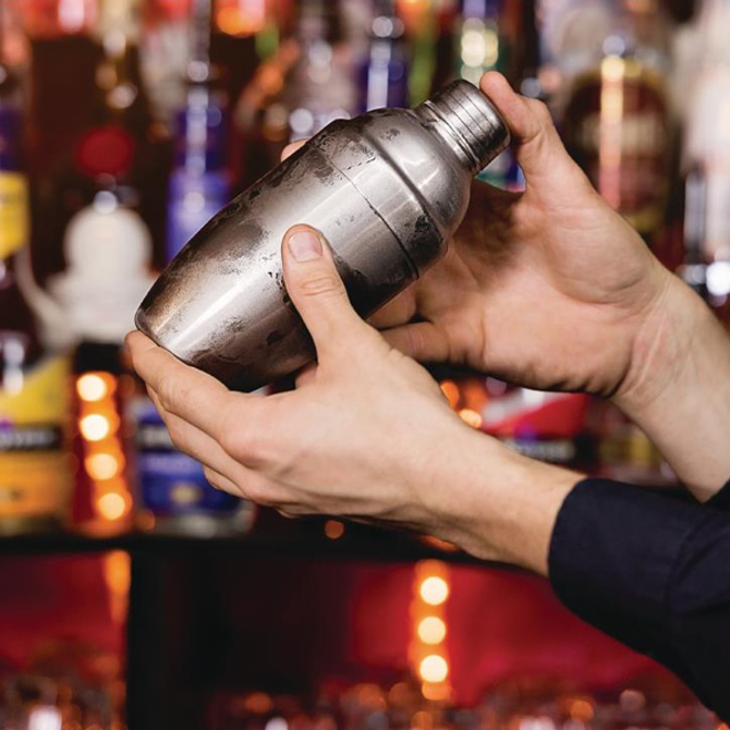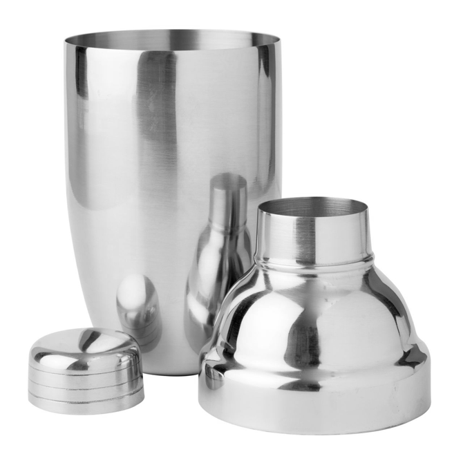 Perfect for cocktail bars, this cocktail shaker features a 3 piece design with an in-built strainer.