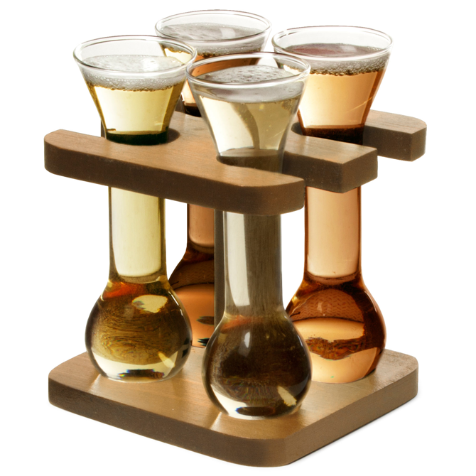 For a unique way to serve your shots, the Mini Yards of Ale with Stand by recreate the classic yard of ale in miniature form. Whether you're serving shots to a group of friends, or you want a fun way to display your beverages, this glasses and wooden stand set helps give a unique twist to your drinks service.