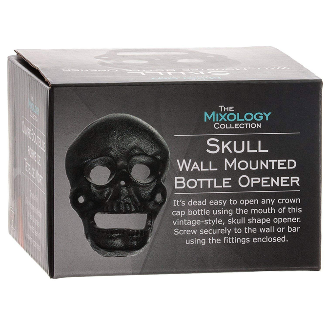 Ideal for home bars and themed bars this wall mountable bottle opener showcases an eye catching Gothic inspired skull design. Made from heavy duty cast iron it is incredibly durable and is sure to withstand every day use in home or commercial bars.