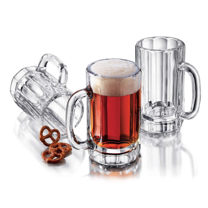 Leaving plenty of room for a generous size head, the 22oz Panelled Beer Mugs are a great way to enjoy a beer. The heavyweight construction makes these handled beer glasses durable, while the panelled design gives these oversized pint glasses a classic look.