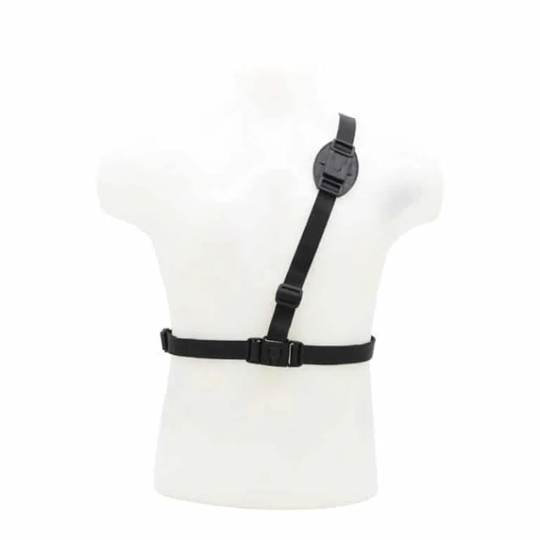 The 3-Point Klickfast Shoulder Harness uses tough polyester straps to secure the docking station on the body. These straps are tightly woven and suitable for use in outdoor and demanding environments.