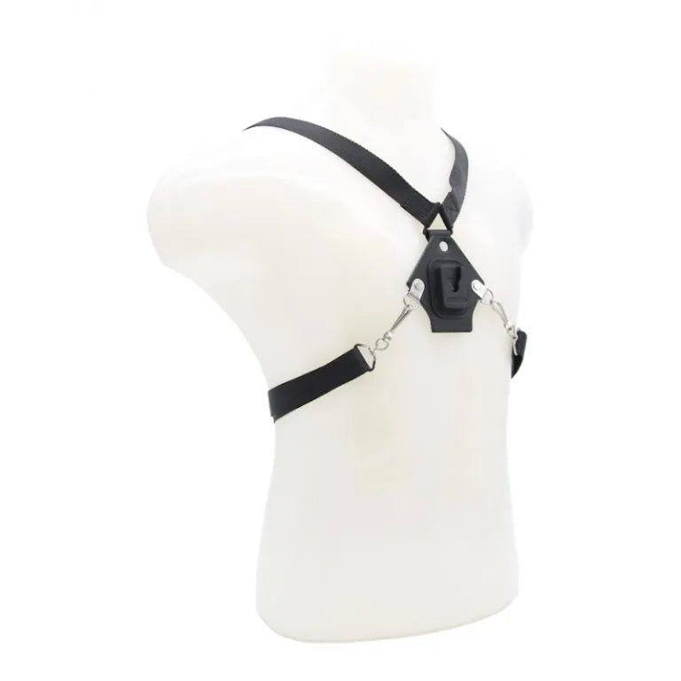 The Peter Jones KlickFast Chest Harness (4-Point) designed to allow the dock to be positioned around the centre of the torso. This allows for body cameras and radios to be accessed easily by the user. This is particularly useful for use with body cameras as having the device in the centre of the body gives a greater field of view while footage is being recorded. This makes it an ideal body cam harness.