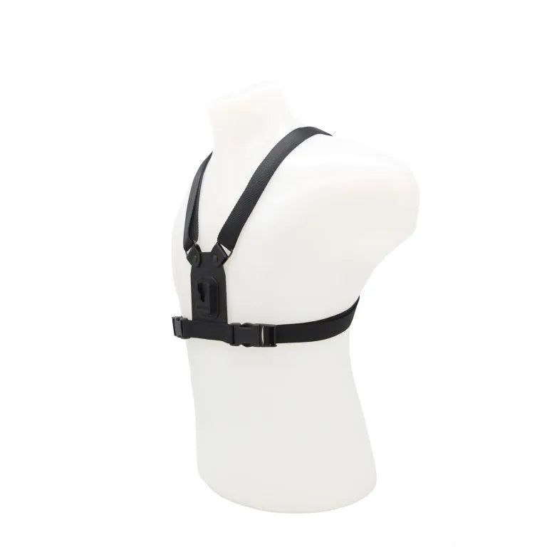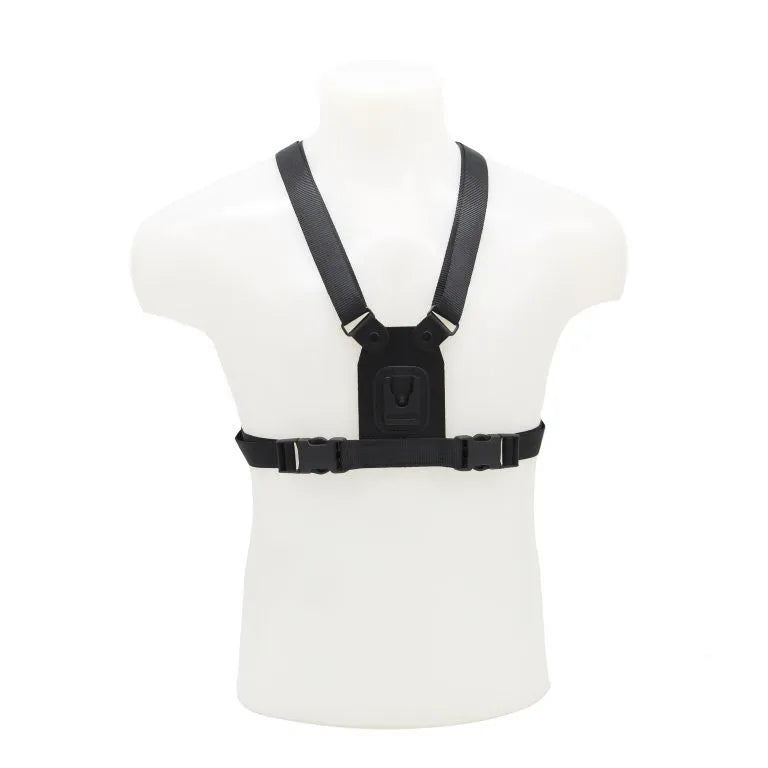 This 4-Point KlickFast Chest Harness uses tough polyester straps to secure the docking station on the body. These straps are tightly woven and suitable for use in outdoor and demanding environments. The staps themselves can be lengthened and shortened near the clips with additional size adjustment possible where all four meet on the back of the harness.