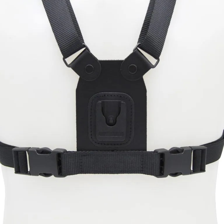 The Peter Jones KlickFast Chest Harness (4-Point) with Nylon Clips designed to allow the dock to be positioned around the centre of the torso. This allows for body cameras and radios to be accessed easily by the user. This is particularly useful for use with body cameras as having the device in the centre of the body gives a greater field of view while footage is being recorded.