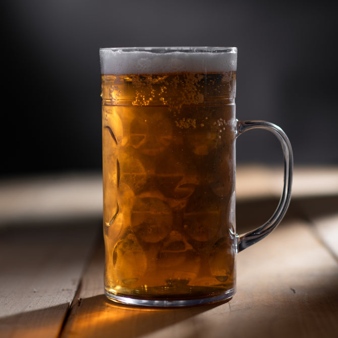 As well as providing a shatterproof alternative to glassware, the polystyrene Plastic Beer Stein is BPA free, making it more health conscious towards the drinker, a feature that is not found in polycarbonate plastic. Host your own beer festival with this large 2 pint beer glass to offer an alternative serving size of on tap beers.