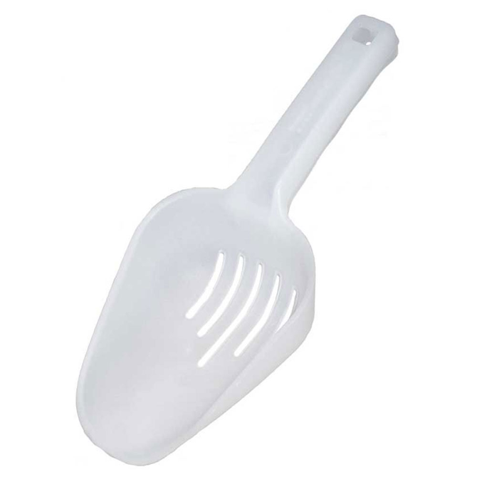 The clear plastic slotted ice scoop from Ugroup is designed to scoop 10oz of ice at a time whilst allowing any water to drain through the slots. Dishwasher safe and freezer Safe, this clear plastic scoop is perfect for use in commercial establishments.