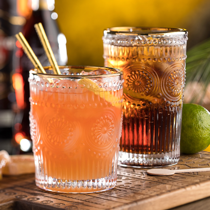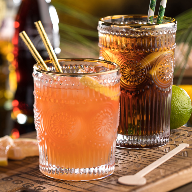 A beautiful dash of Autumn gold was added to the popular Rossetti glassware. Precious gold rims sit atop these beautiful textured tumblers.