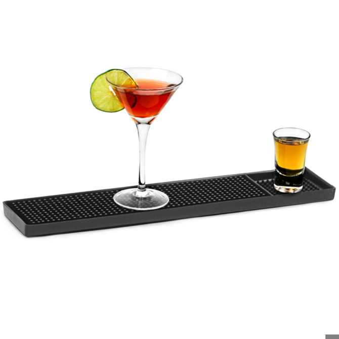 A modern alternative to the traditional bar towel, this Rubber Bar Mat is ideal for contemporary bars. Wide enough to accommodate most classic glasses, it's the best way to protect your precious bar top from spillages and condensation marks.