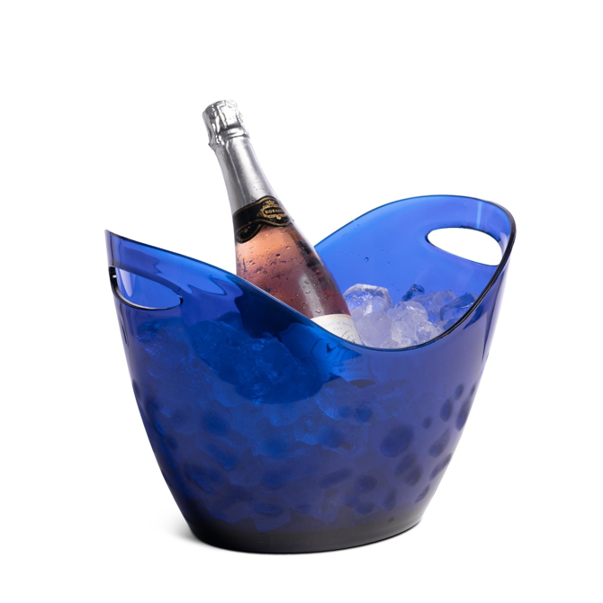A very elegantly shaped wine cooler in blue plastic making it ideal for banquets and outdoor catering where glass may be a danger. Made from a thick and durable acrylic, this ice bucket will remain strong and shouldn’t crack easily. If you were to drop one anyway we would be making a strong case to save the wine and Champagne before the cooler!