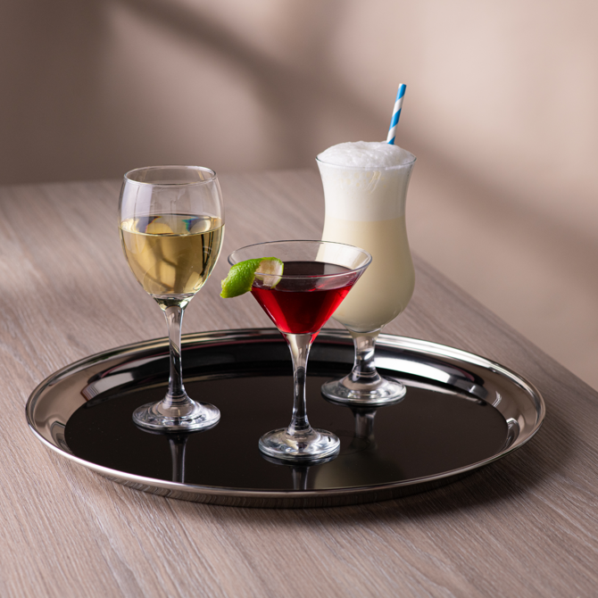 The PVC layer doesn't detract from the look of the classic stainless steel tray, allowing it to be used for presentation purposes as well as for the obvious practical uses. Ideal for commercial use in restaurants and cafes, this waiters' tray is an indispensable part of any bar set up.