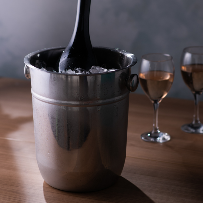Chill your bottle of bubbly in style with the sleek looking Stainless Steel Champagne Bucket. Ideal for use with the Folding Champagne Bucket Stand, they make the perfect pair to accompany your dinner party.